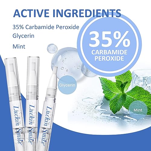 PROFESSIONAL TEETH WHITENING- Luckin Smile professional teeth whitening pens contain 35% carbamide peroxide, which is a safe peroxide that quickly removes years of accumulated stains from coffee, tea, wine, cigarettes and more. Remove tooth stains quickly and effectively!