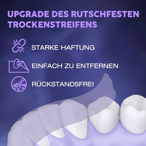 Antislip en residuvrij design: met de nieuwste droog- en antisliptechnologie past deze droge tandstrip zich perfect en comfortabel aan je tanden aan, hecht uitstekend, is antislip en laat geen resten achter.