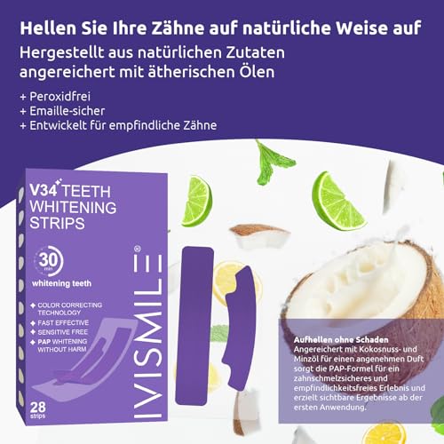IVISMILE Whitening Strips, V34 Purple Colour Corrector Pap Double Formule, verbeterde strips voor het bleken van de tanden, peroxidevrije whitening tanden voor het bleken van tanden 28 strips,
